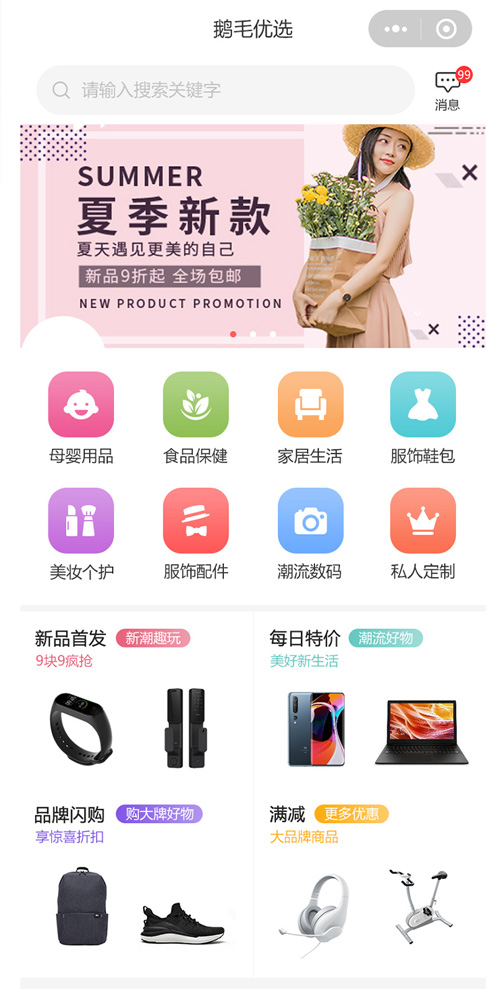 微信小程序商城,主页美观,吸引用户驻足;给与用户优惠福利,刺激商城的转化与分享裂变。