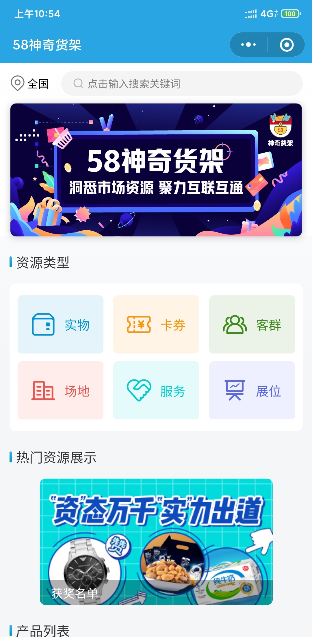 58货架同城旗下生活分类服务,支持一键查找卡券、客群、场地、服务、展位,分类信息一步到位的小程序。